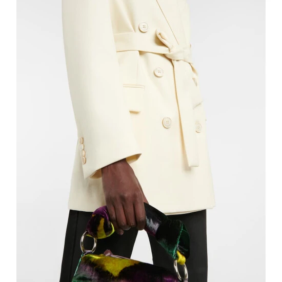 Made from the softest wool knit, this double-breasted blazer from Dries Van Noten has wide pointed lapels and a belted waist.