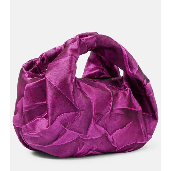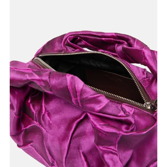 This pillowy clutch from Dries Van Noten has a twisted top handle and a crinkled surface. Allow its rich fuchsia color to pop against other patterned pieces from the designer.