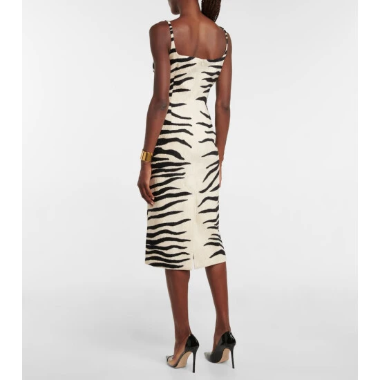 Dries van Noten demonstrates how to make animal prints sophisticated with this zebra-patterned midi dress. Featuring elegant thin straps and a fitted silhouette, the piece is made from a soft cotton blend with glimpses of silver metallic threads.