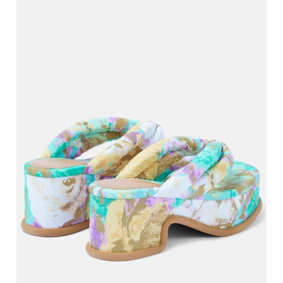 Dries Van Noten casts an artful eye over thong sandals with this platform-soled design. Made with all-over floral-printed padded straps, this design is shaped with square toes.