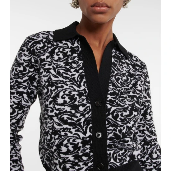 This graphic cardigan from Dries Van Noten is made from a blend of wool, with a monochrome intarsia motif.