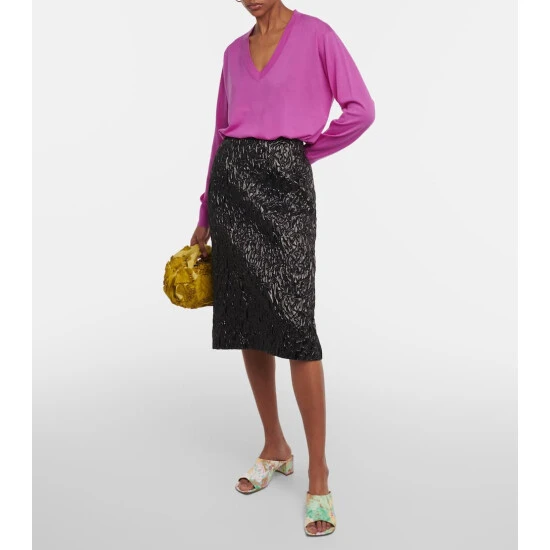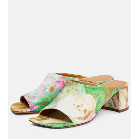 Running the gamut of the imagination, Dries Van Noten’s prints are often abstract, overtly maximalist, and always one-of-a-kind. Appearing in a vibrant, marble-inspired jacquard pattern, these slip-on sandals have chunky heels and square toes.