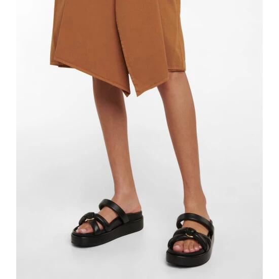 These sandals from Dries van Noten are a minimalist summer staple. The leather design has gleaming metal rings where the straps cross, and are set on faceted platforms.