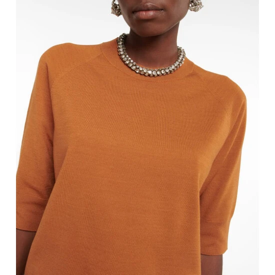 Complete your wardrobe with elevated essentials such as this orange knit top from Dries Van Noten. Designed for a relaxed fit, the crewneck style has raglan sleeves that fall to a 3/4 length and a straight silhouette.